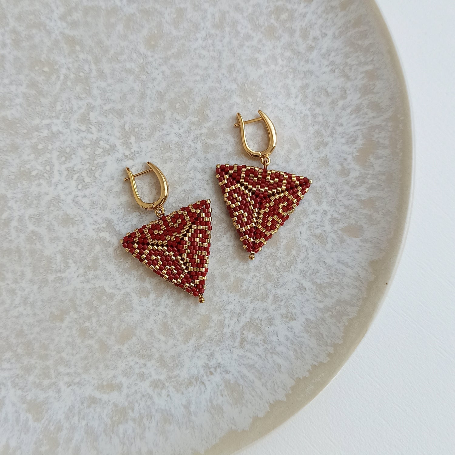Trojúhelníkové náušnice z korálkůLehké a výrazné, ale stále elegantní – trojúhelníkové náušnice...