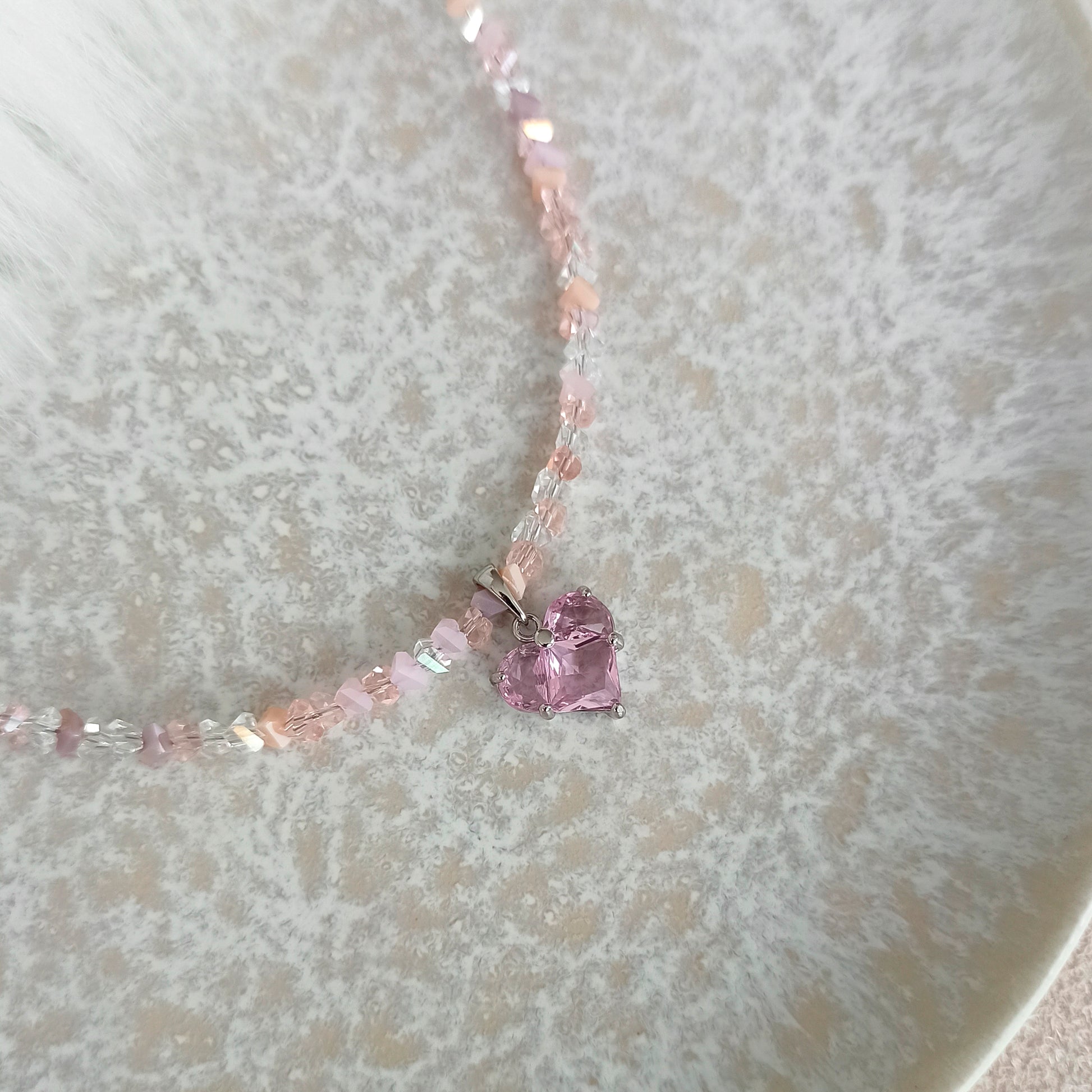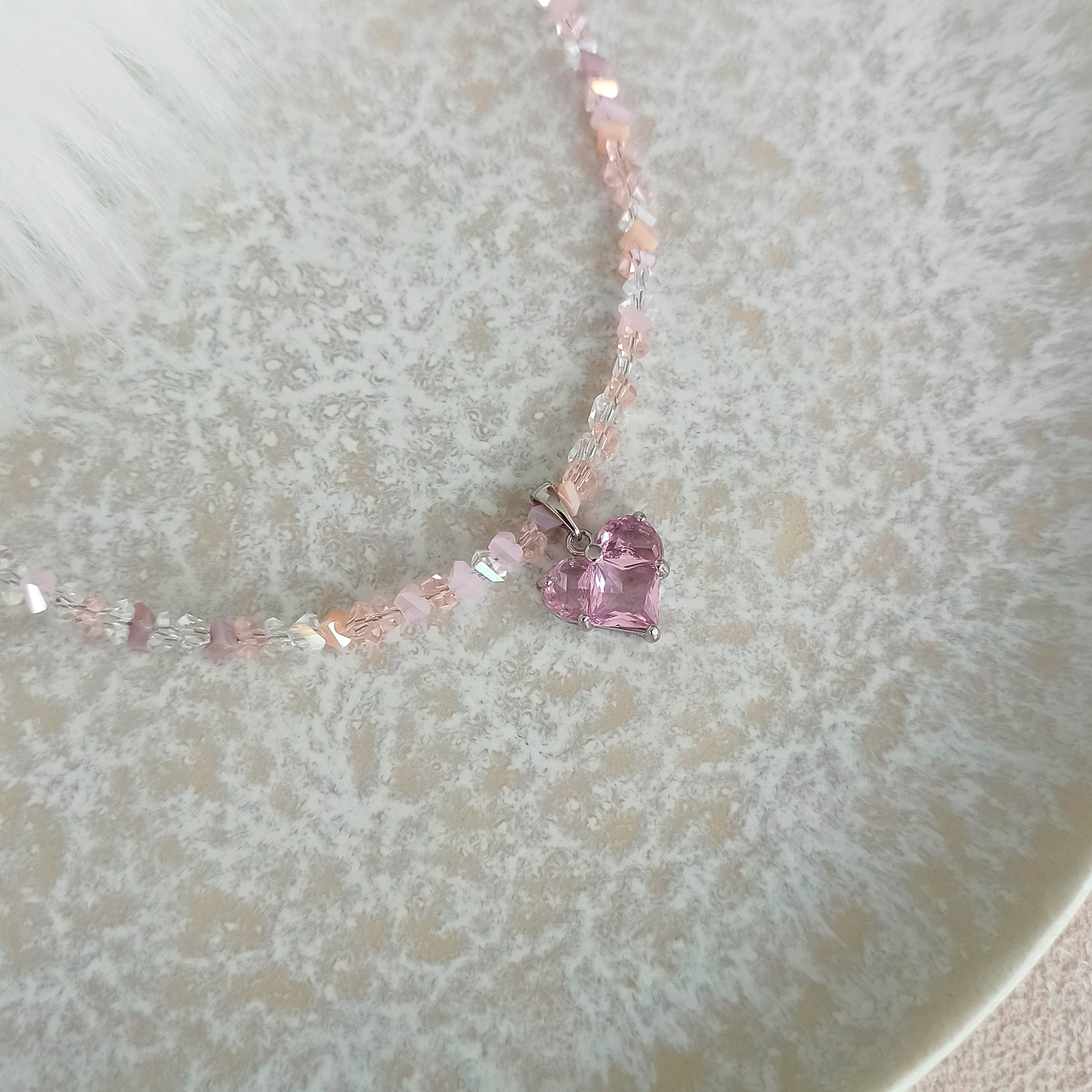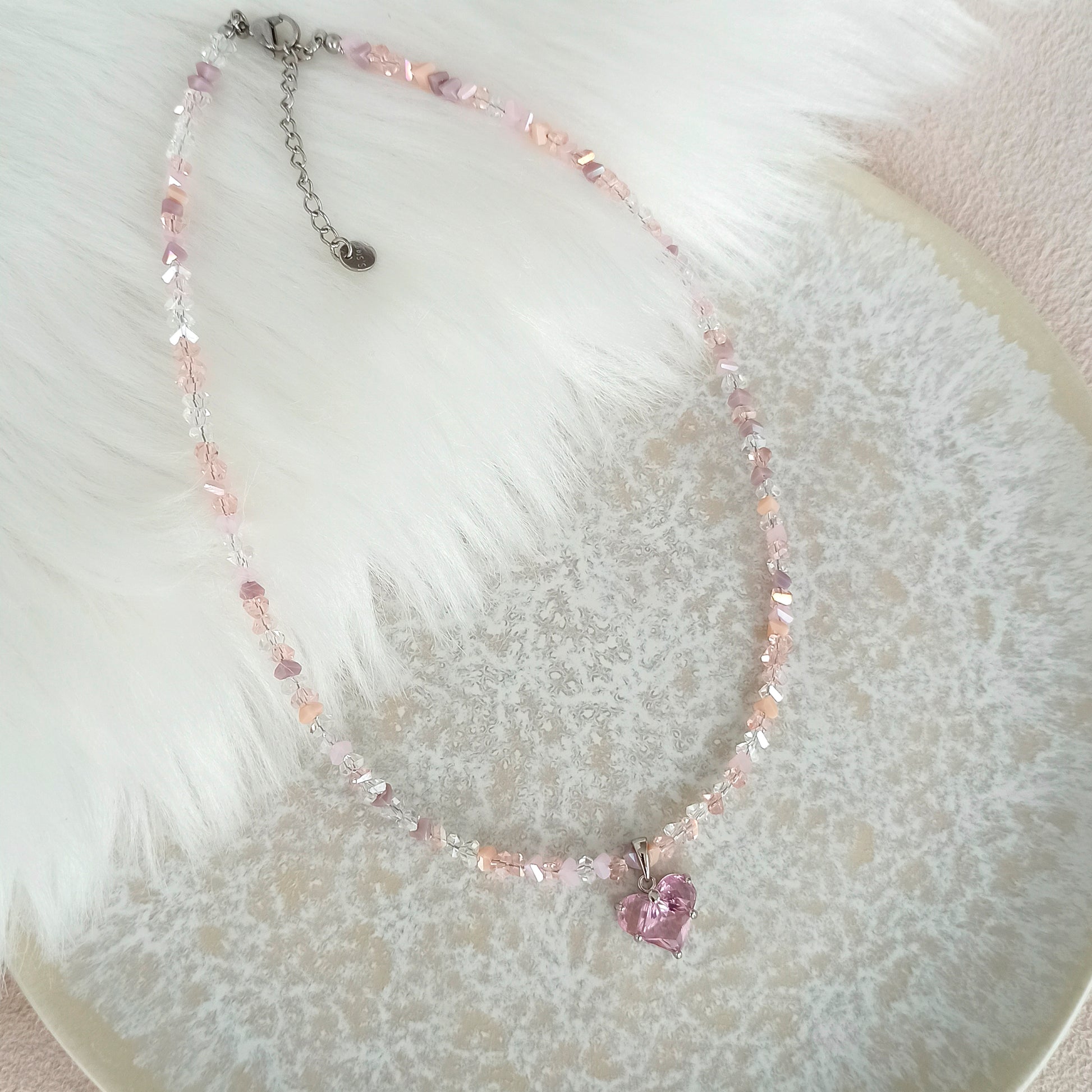 Jedná se o galvanizované skleněné korálky s AB (duhovým) povrchem. Přívěsek je z mosazi s kubickým zirkonem, neobsahuje nikl a má povrchovou úpravu s pravým rhodiem.