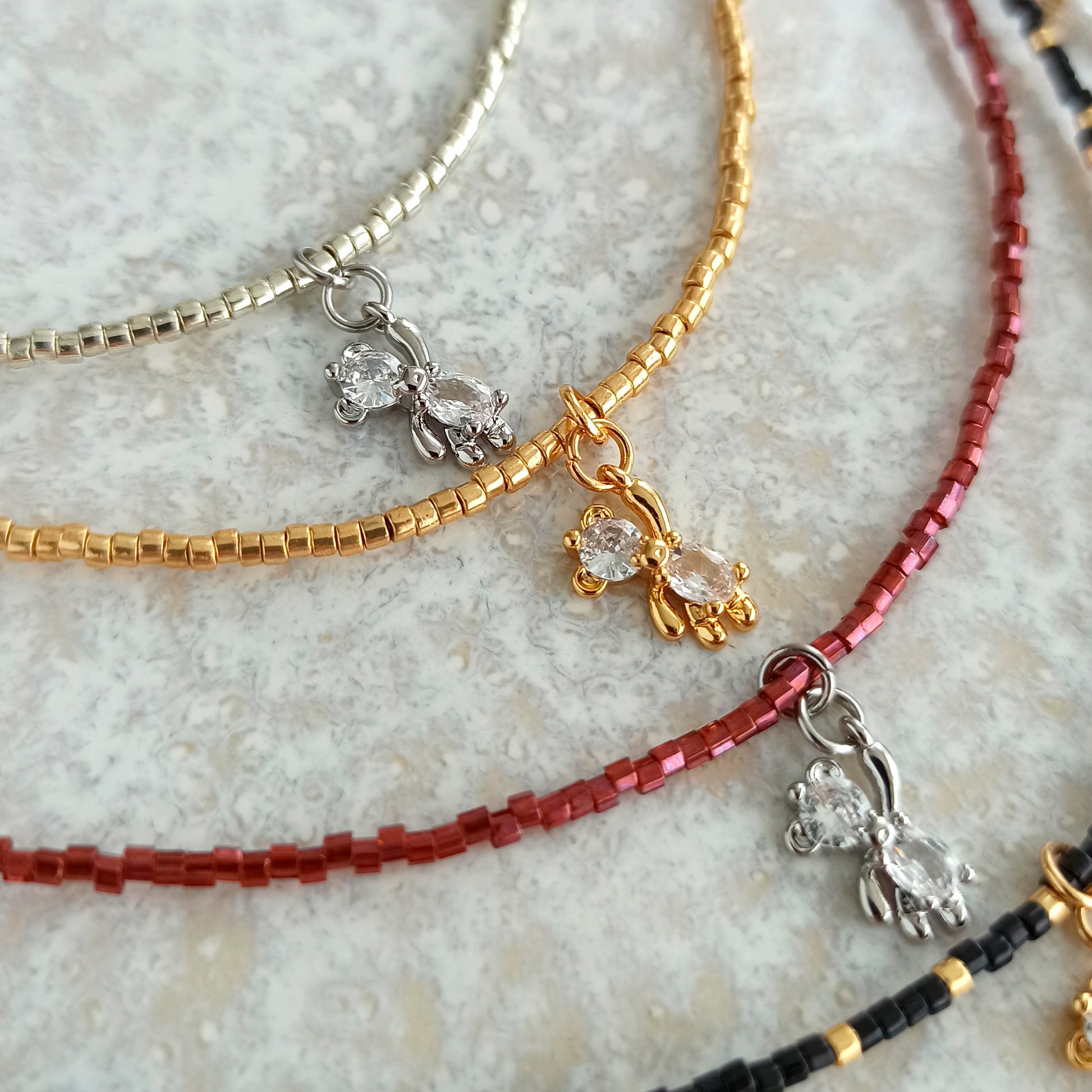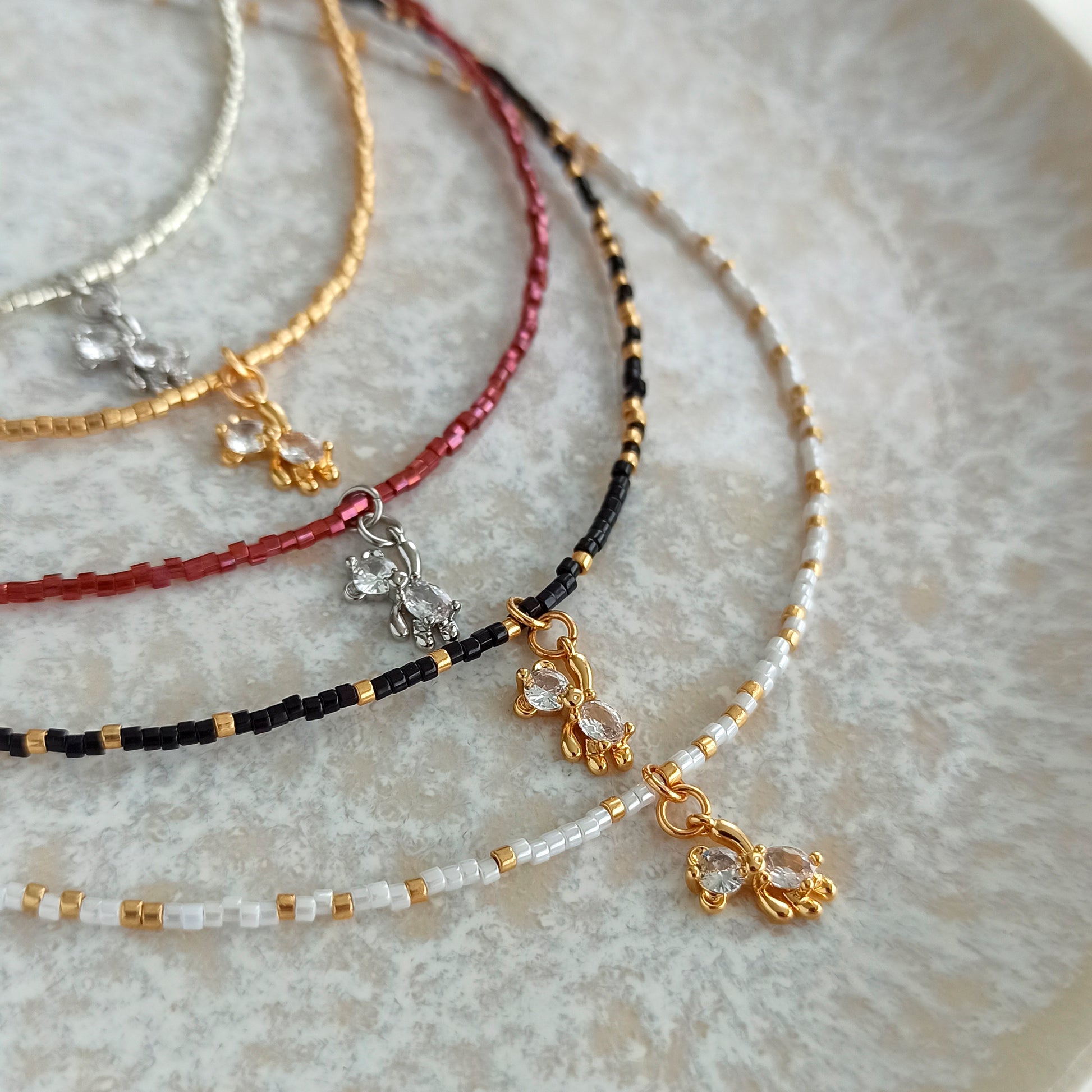 Jemný korálkový choker s malým přívěskem medvídka krásně zvýrazní linii krku a dodá vašemu outfitu hravý a elegantní nádech. Ideální také jako dárek pro dospívající dívku nebo milovnici roztomilých minimalistických šperků.