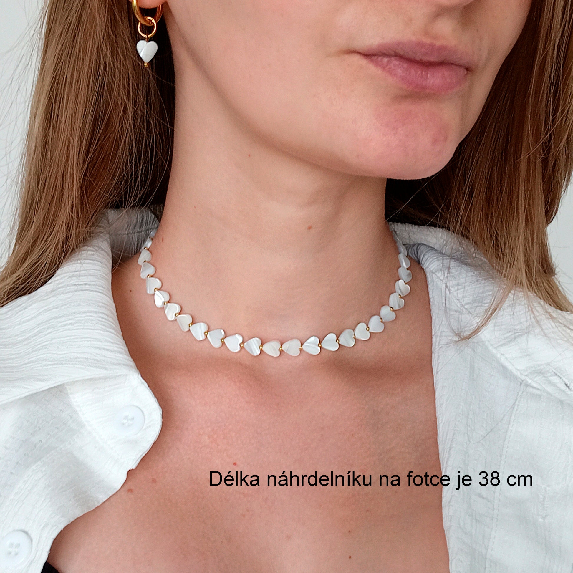 Náhrdelník s perleťovými srdíčky