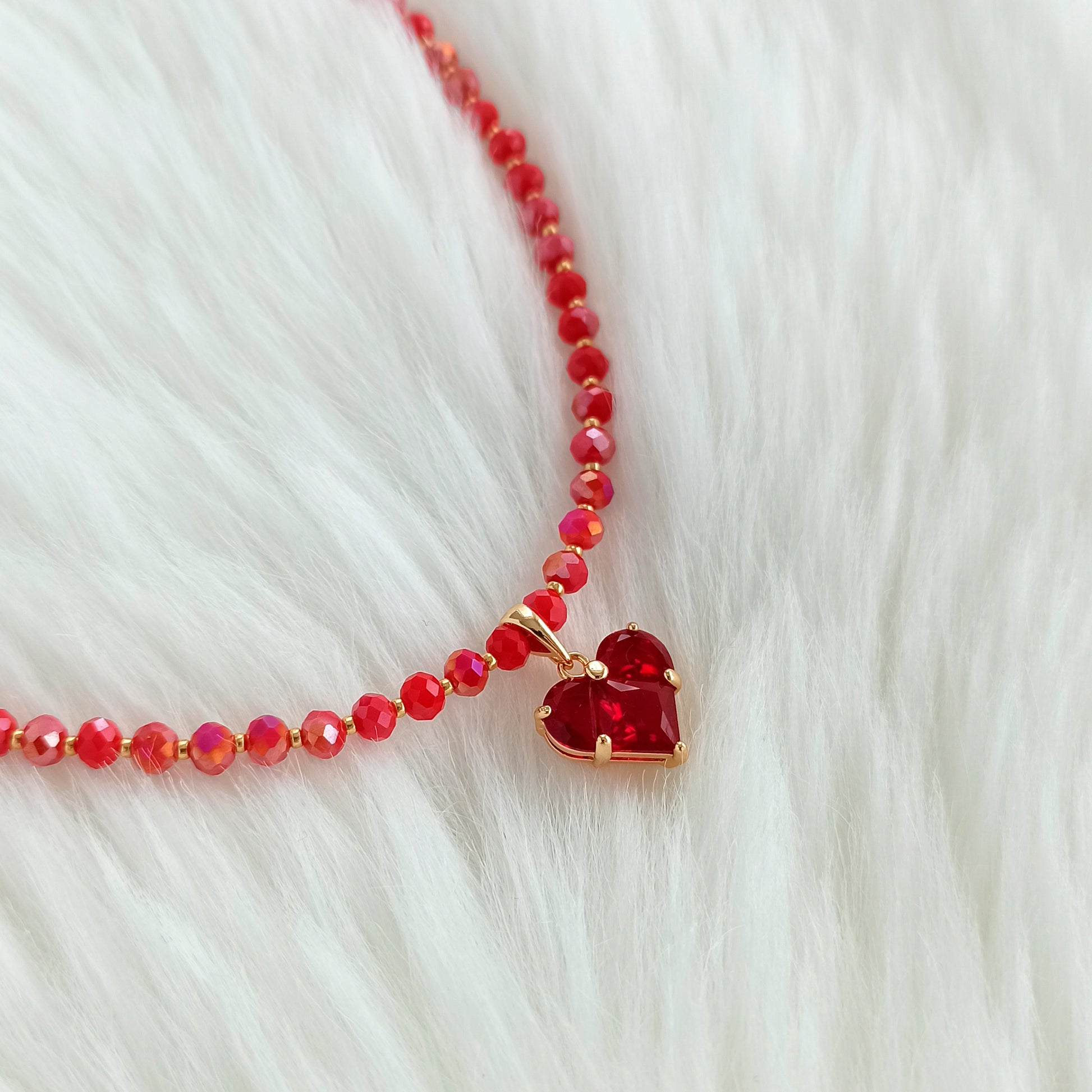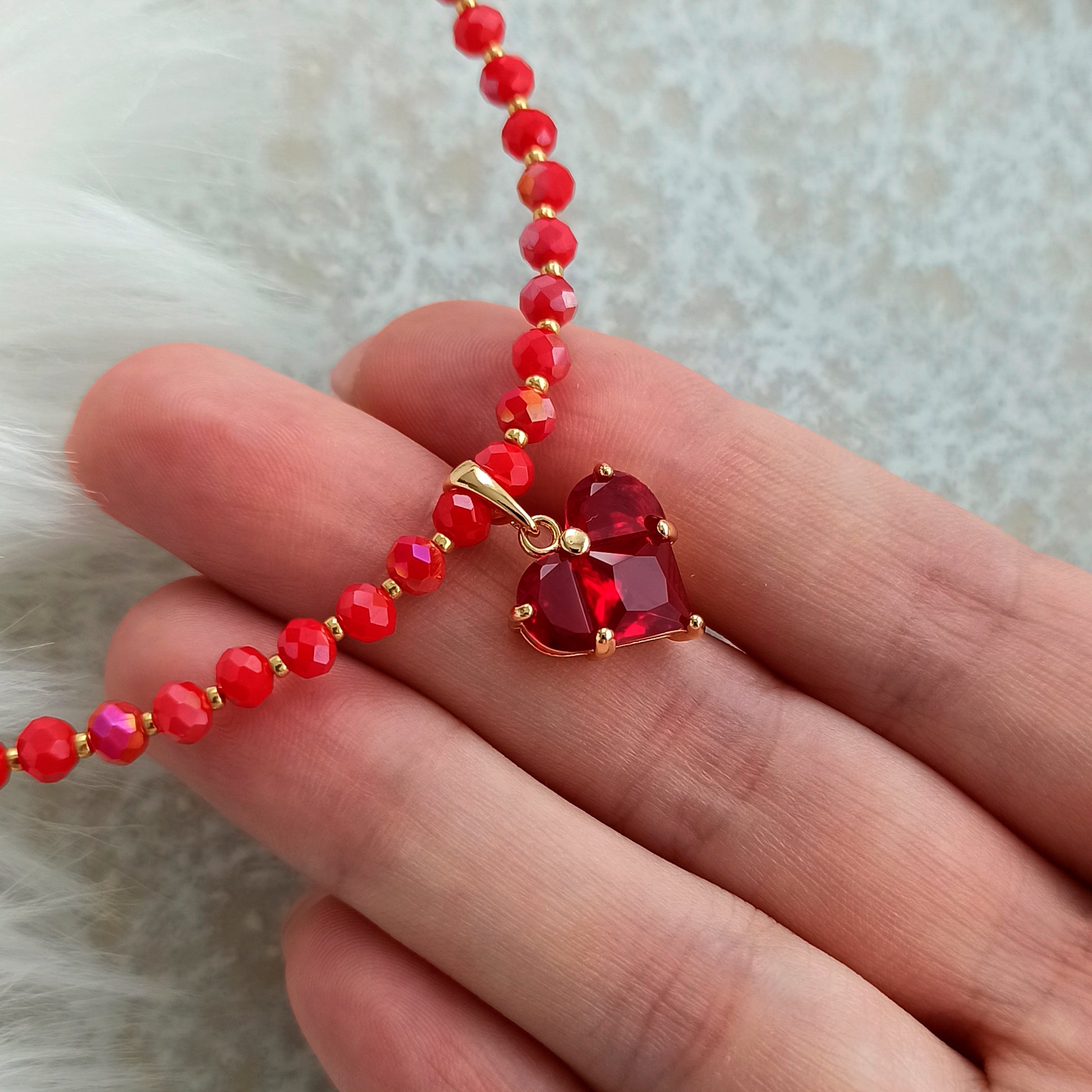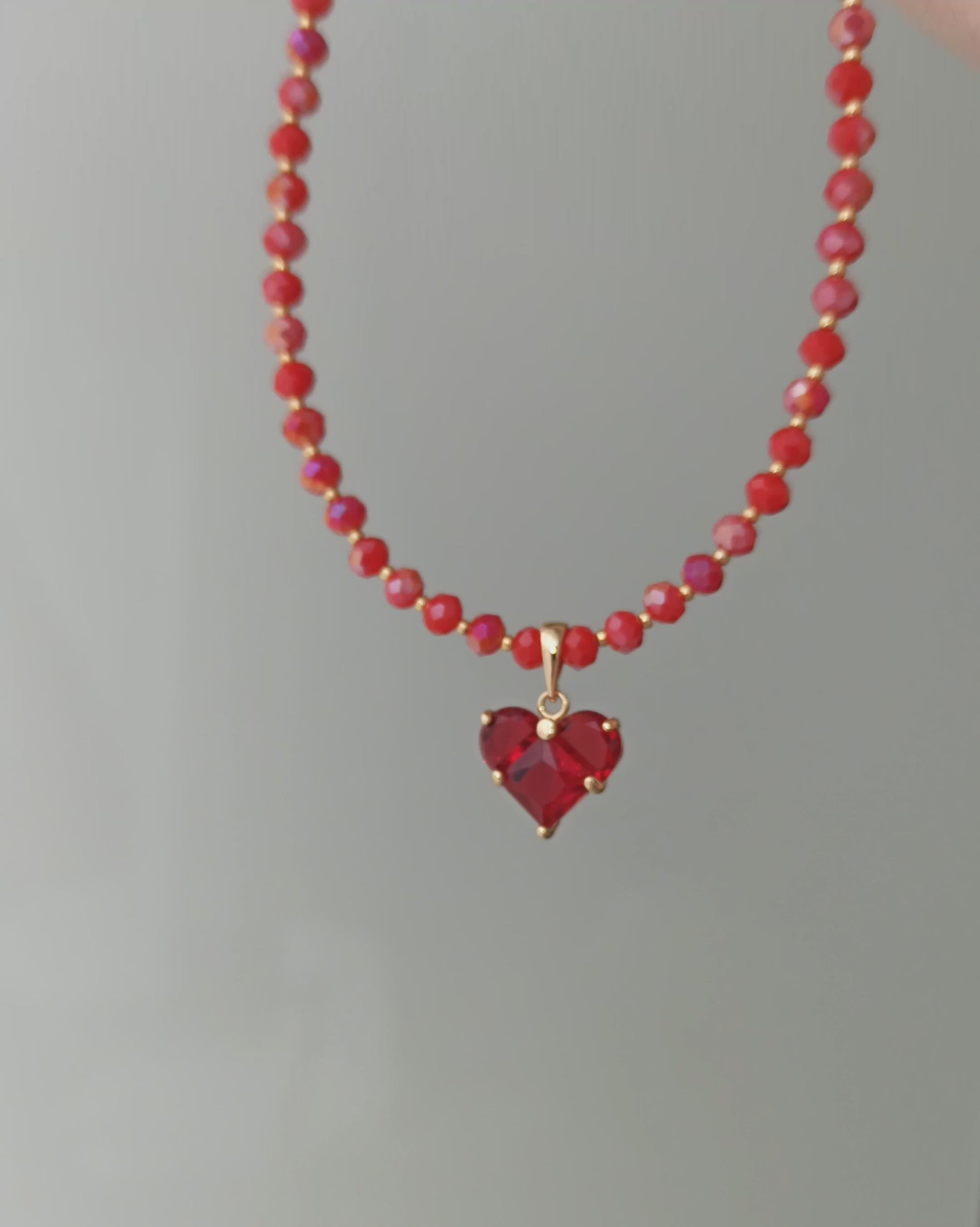 Náhrdelník se třpytivými korálky a červeným srdcem ze zirkonu 18K pozlácením.