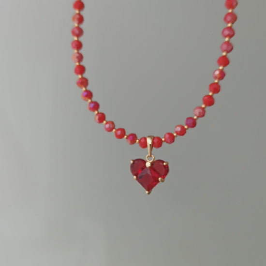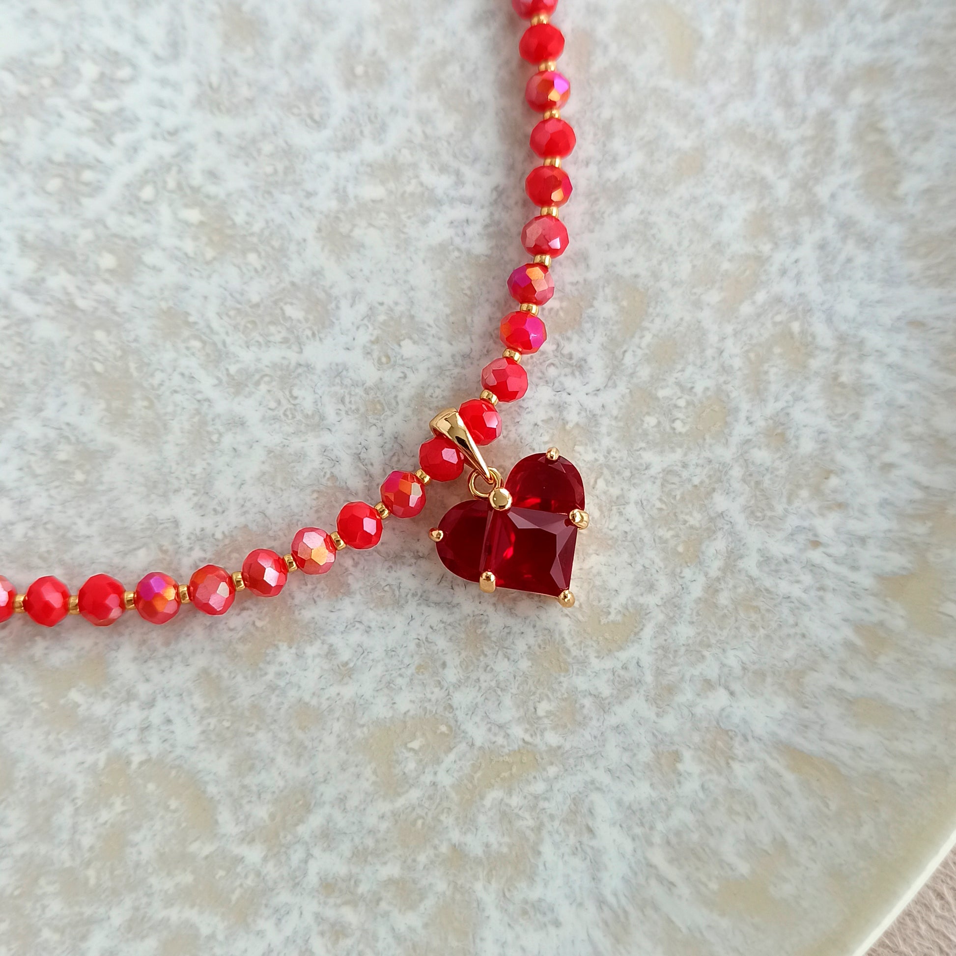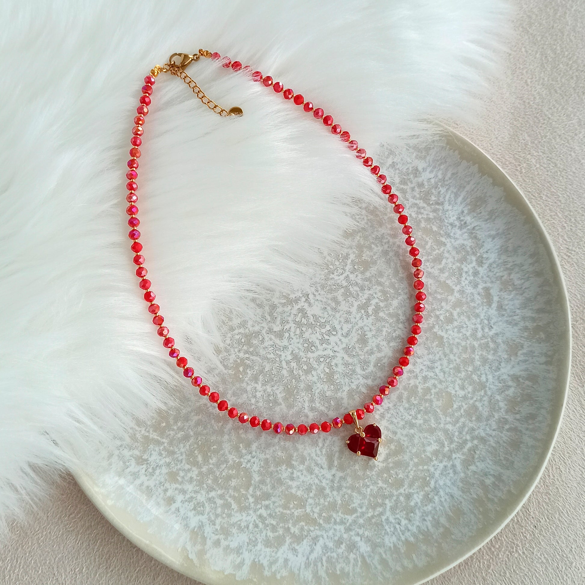 Náhrdelník se třpytivými korálky a červeným srdcem ze zirkonu 18K pozlácením.