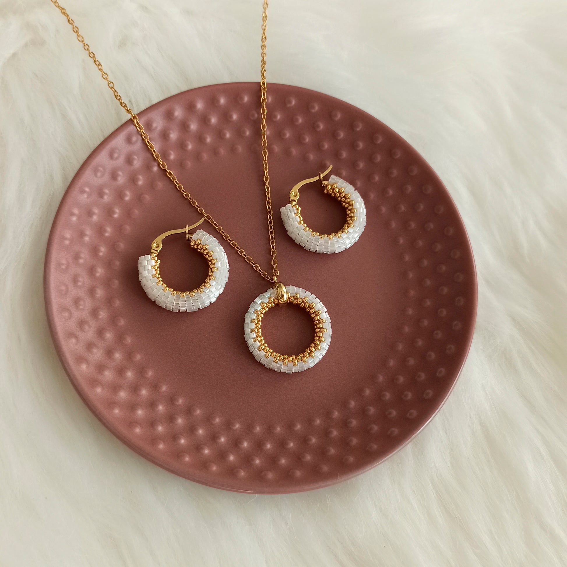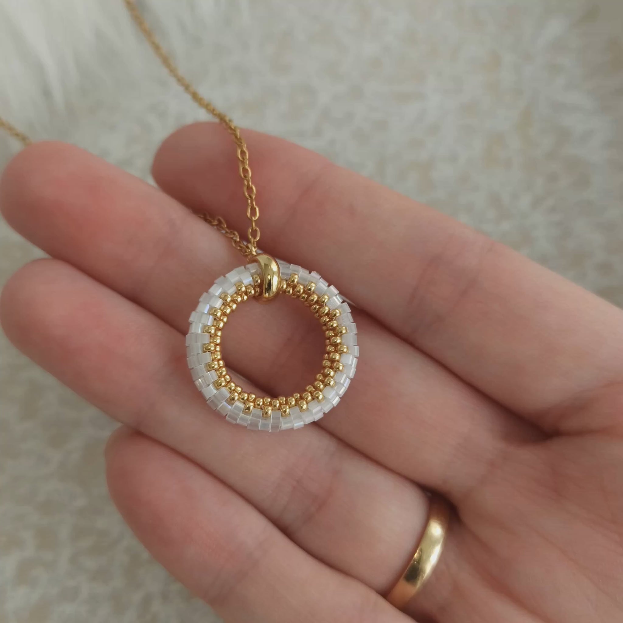 Vyrobeno z vysoce kvalitního japonského saténového rokajlu a nerezové oceli s pozlacením.