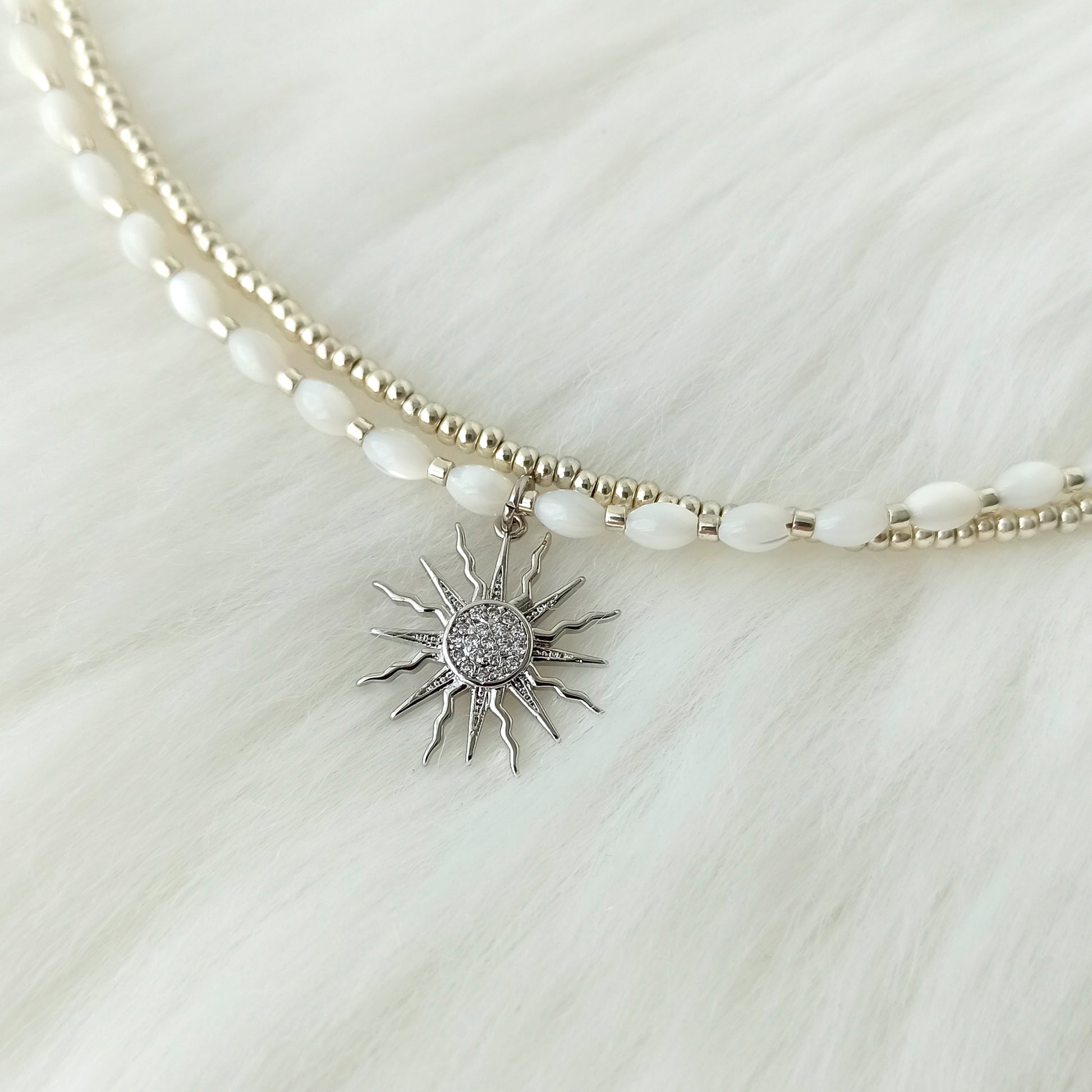 Náhrdelník z perleti s přívěskem sluníčka stříbrným