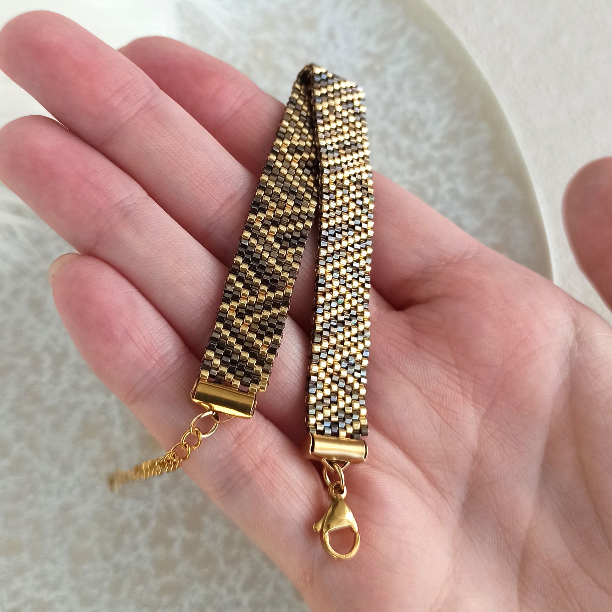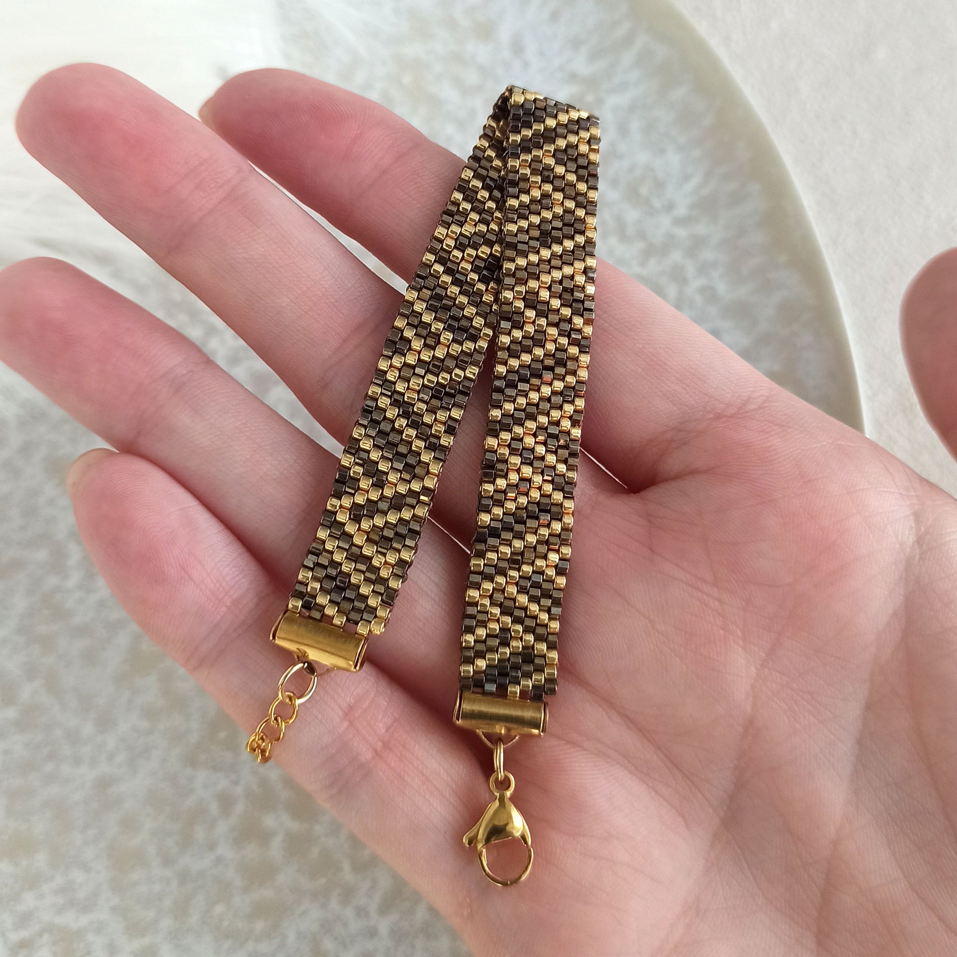 Vyroben z vysoce kvalitního japonského rokajlu, který zajišťuje jemný lesk a precizní provedení.