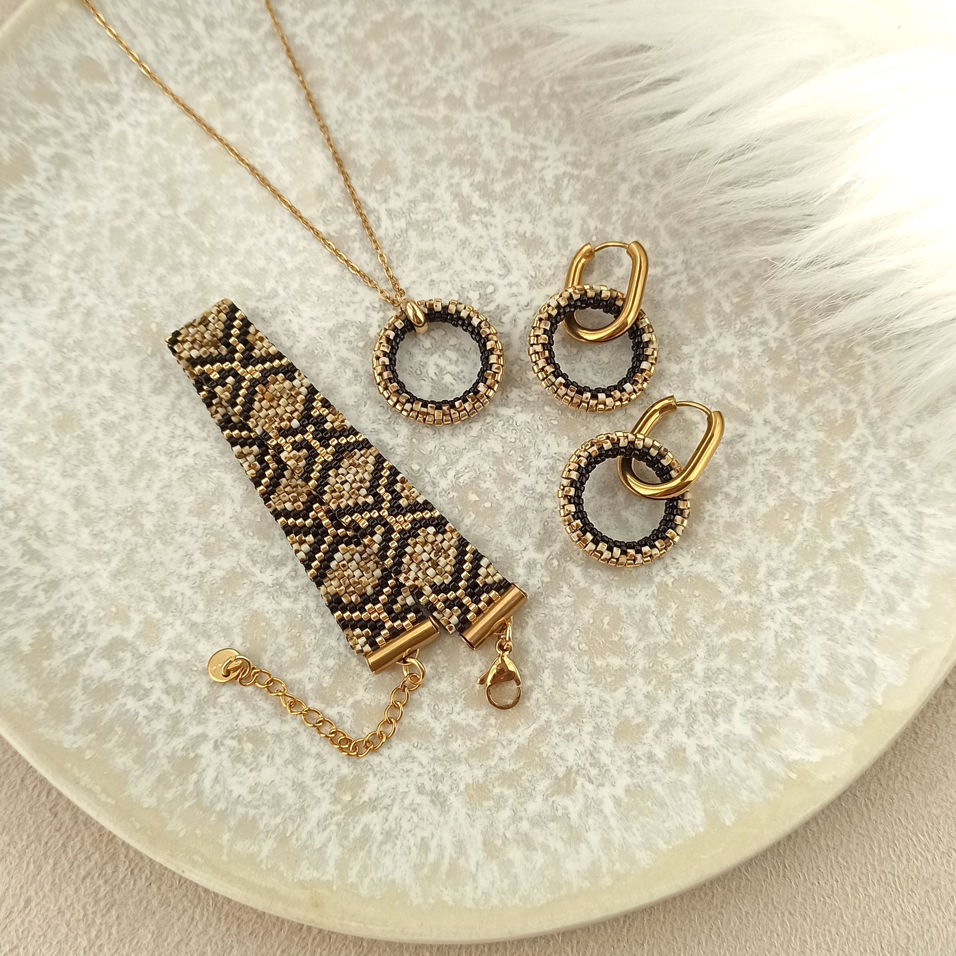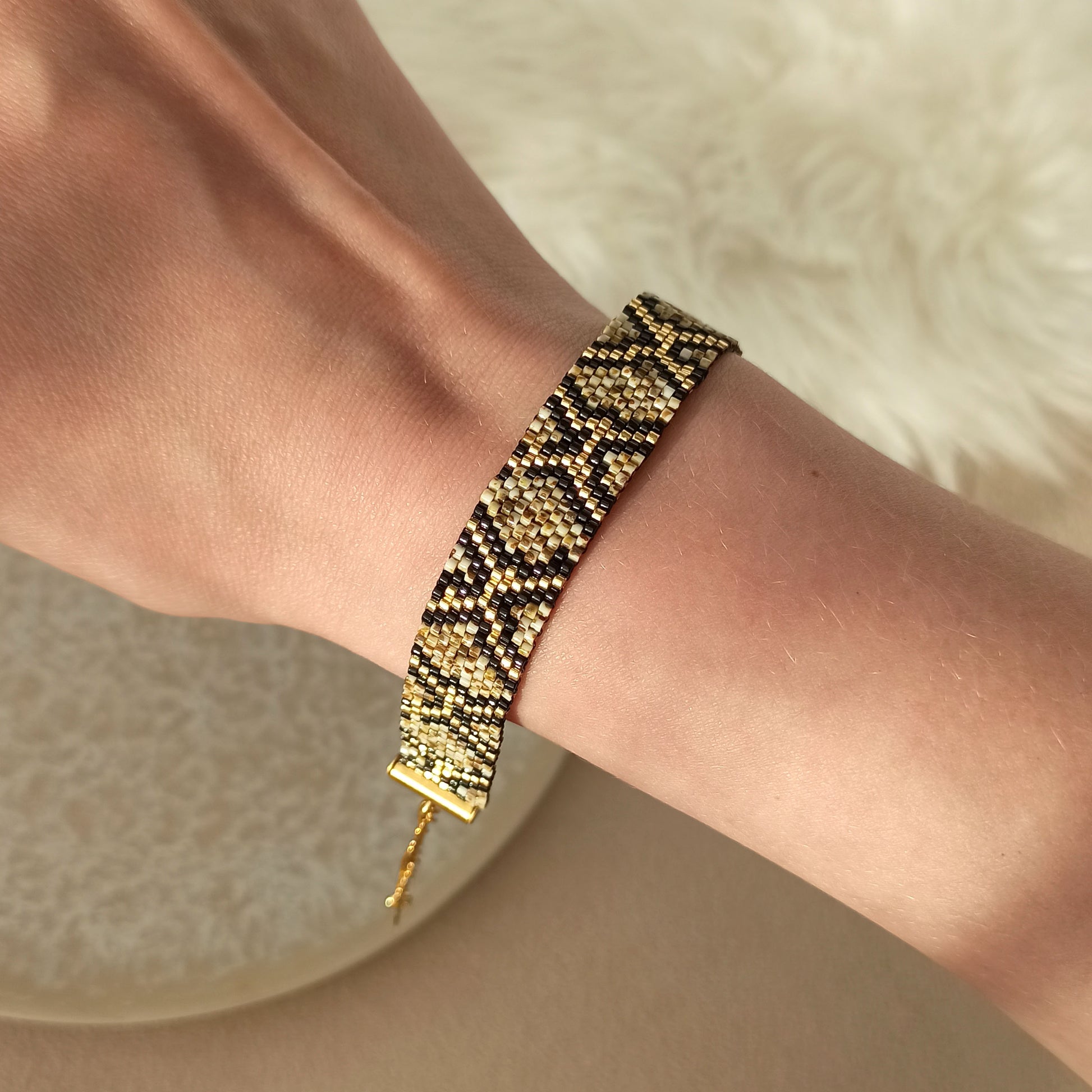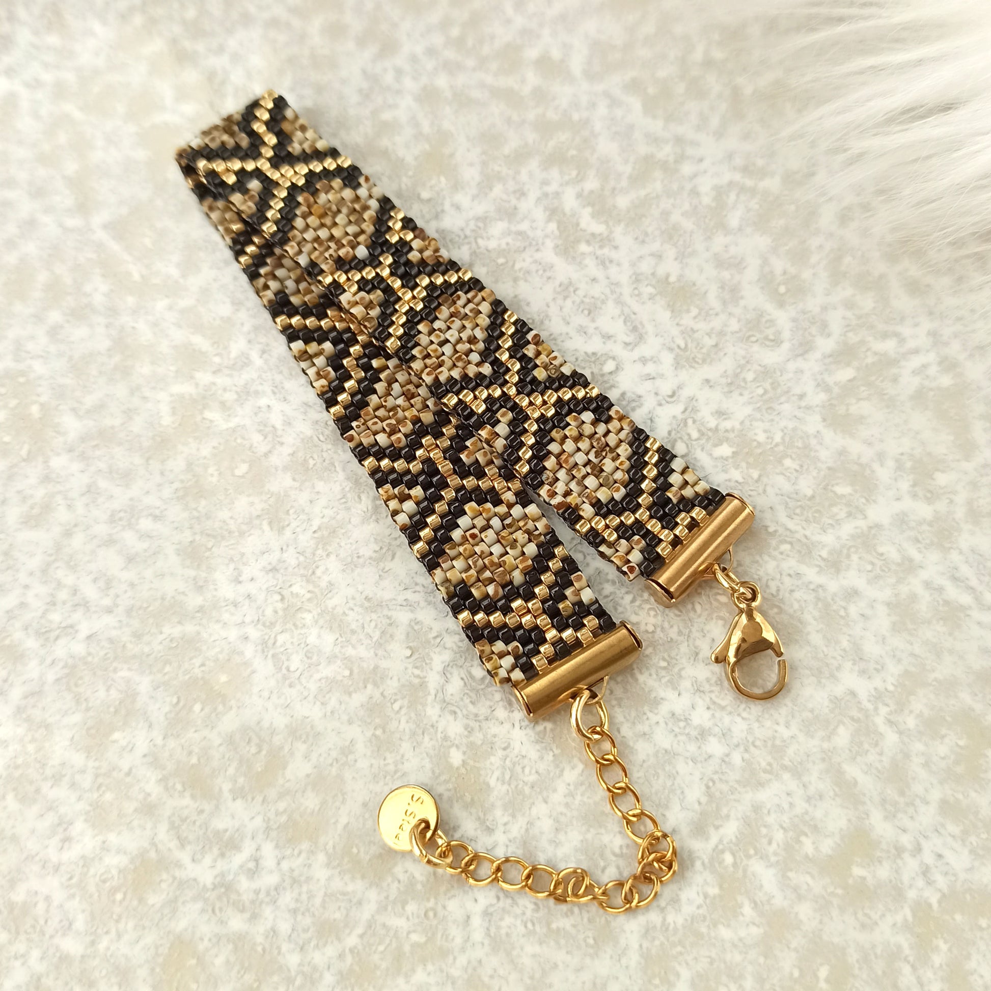 Náramek se vzorem mramorového hada je vyroben z japonského rokajlu s efektem Picasso. Každý korálek má svůj jedinečný vzor, díky čemuž výsledný šperk působí velmi neobvykle a originálně.