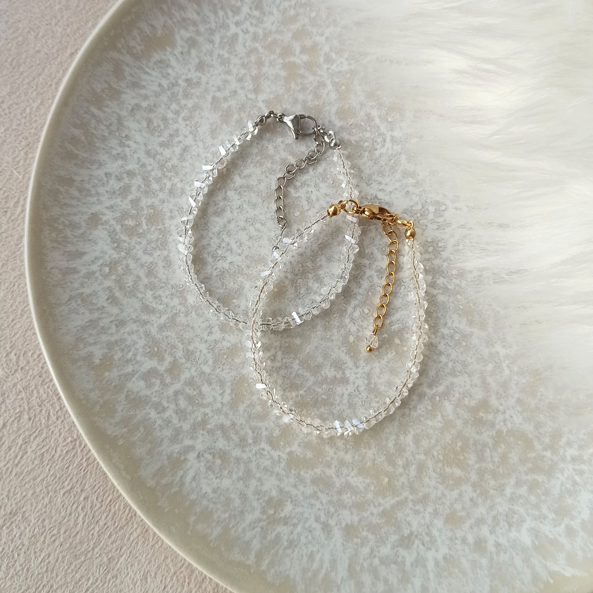 Náramek z křišťálových průhledných korálků