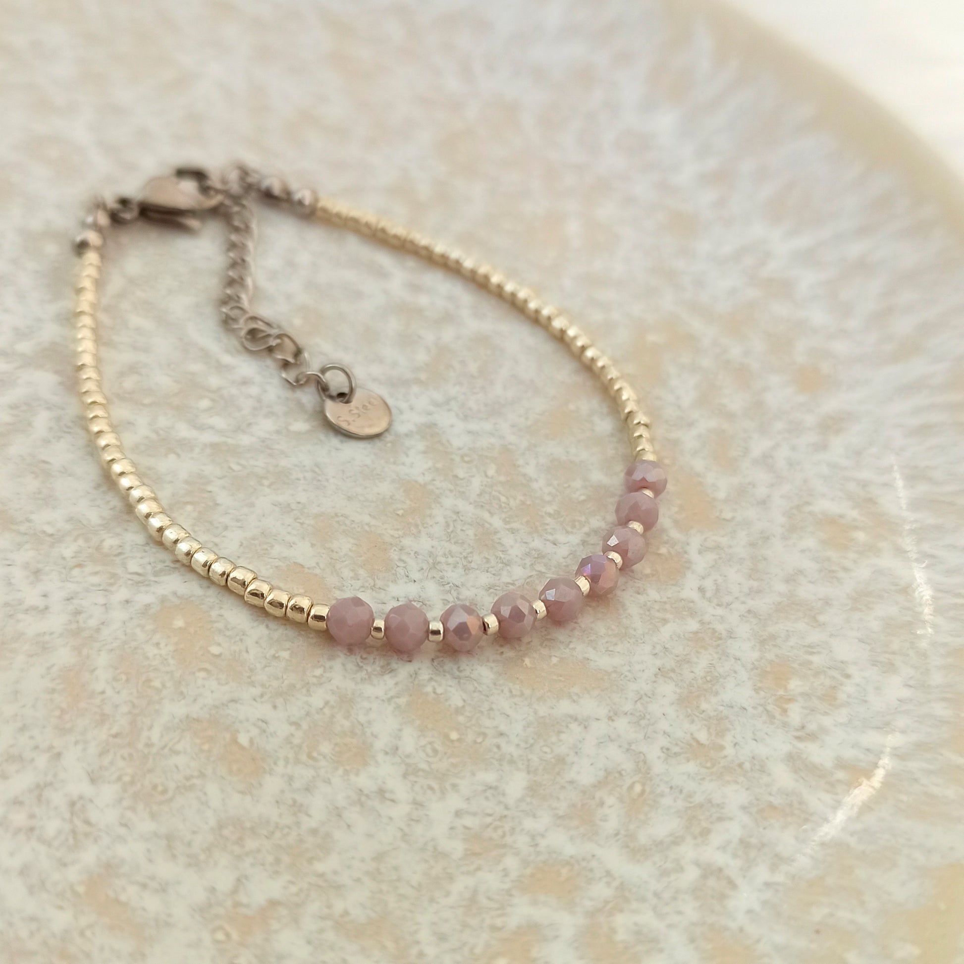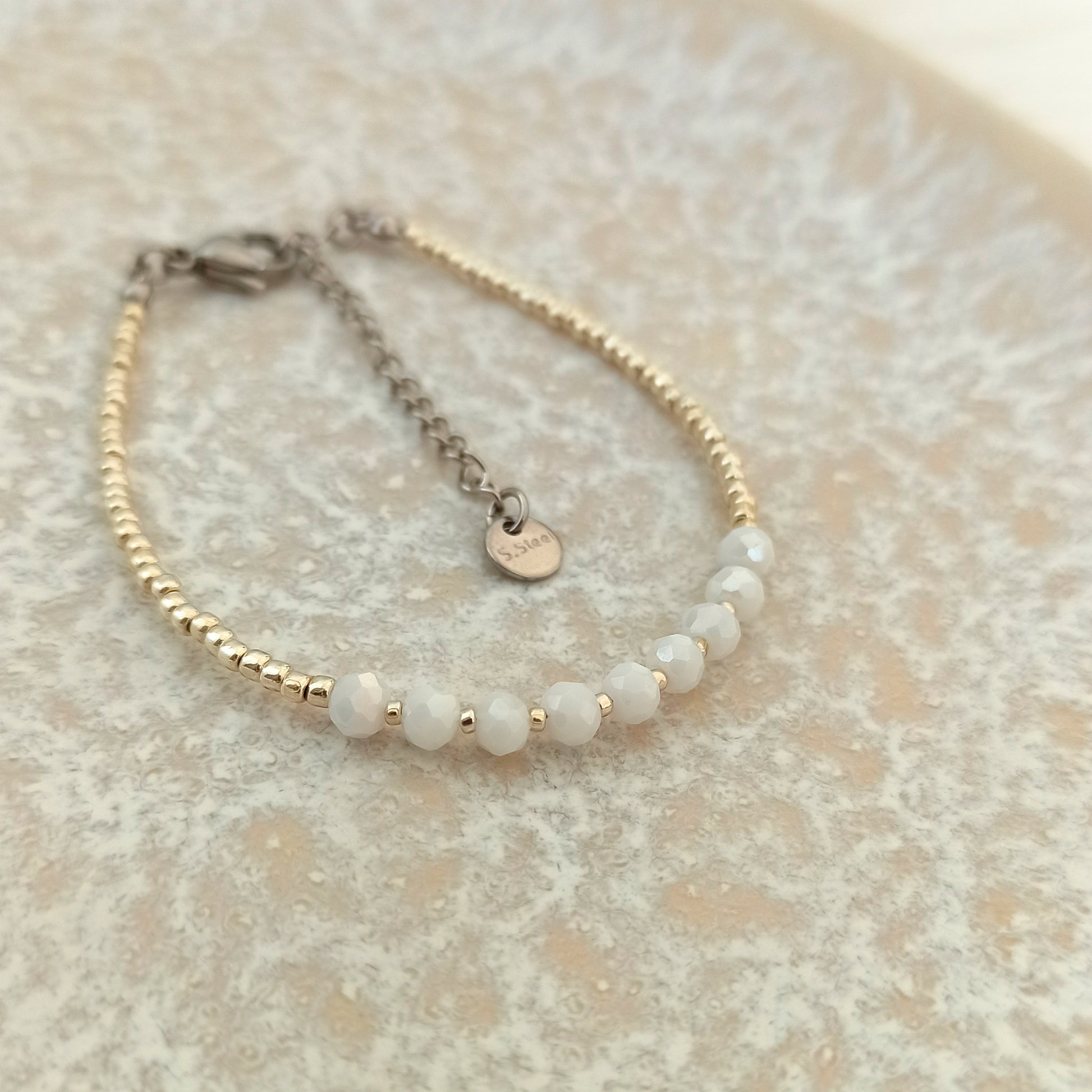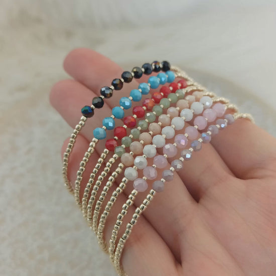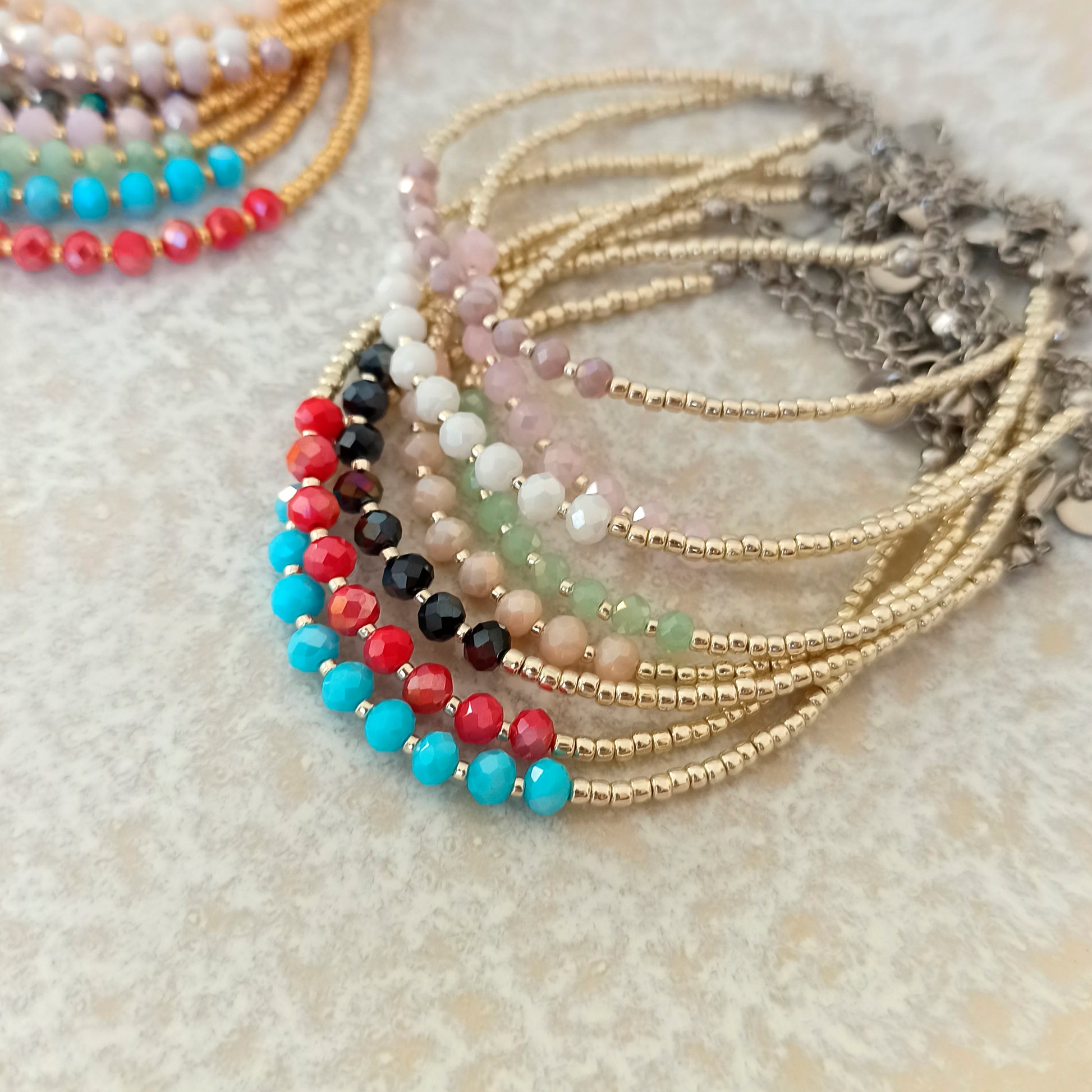 Letní jemný náramek ze skleněných korálků ve tvaru kamínků. Skvěle se hodí pro každodenní nošení i kombinování s dalšími šperky.