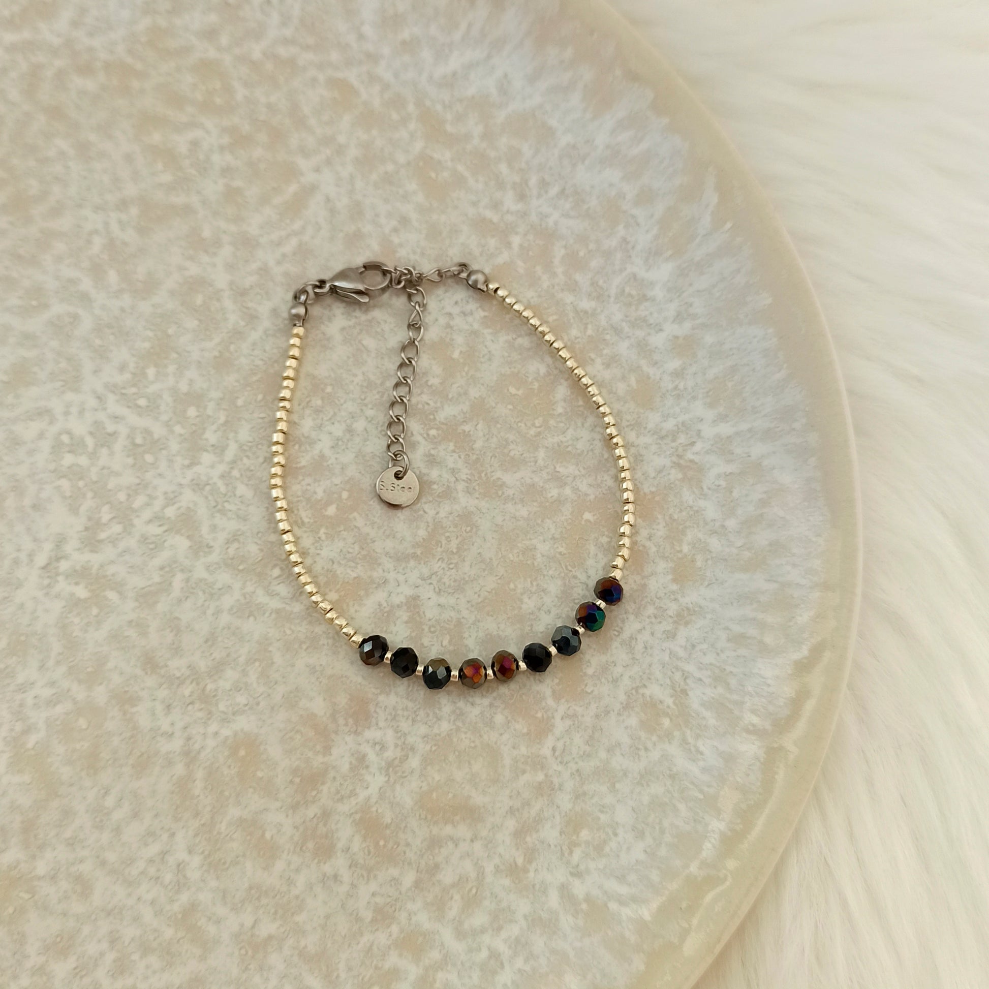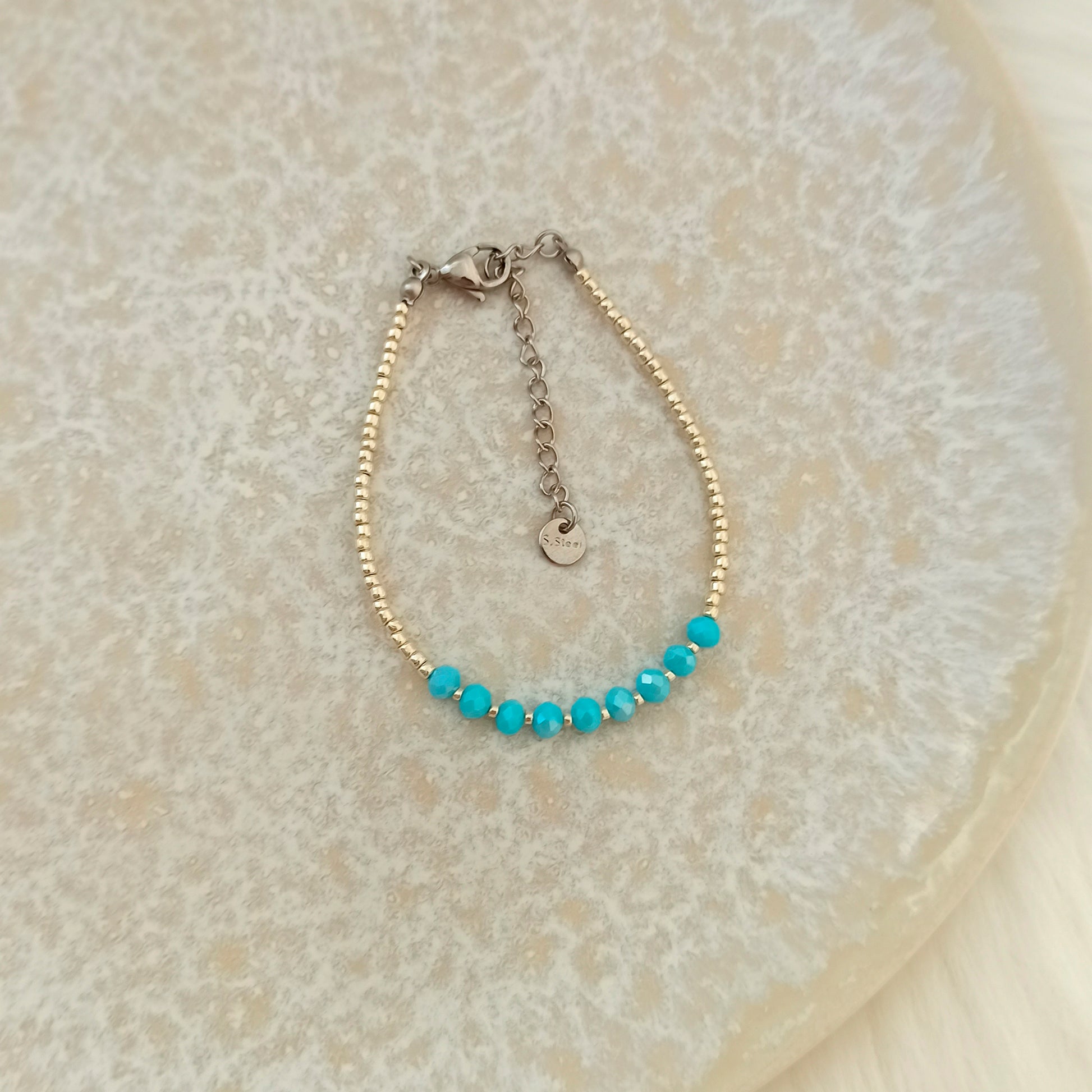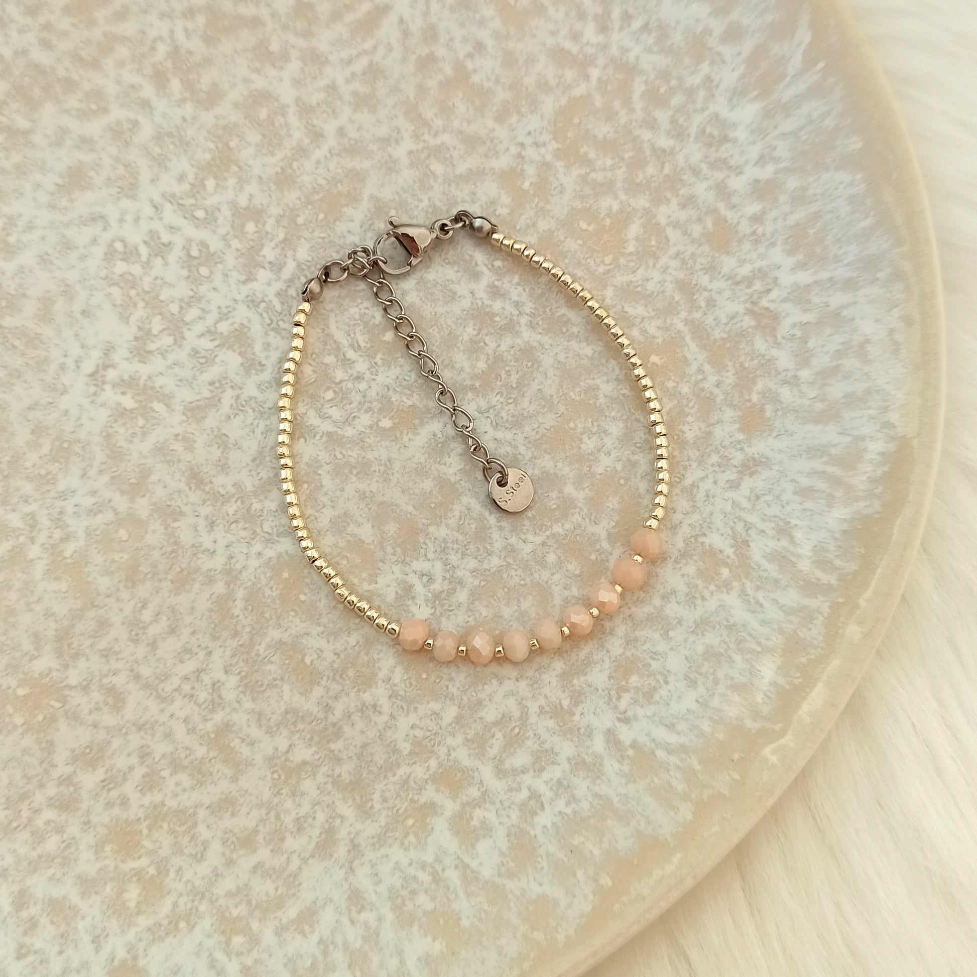 Letní jemný náramek ze skleněných korálků ve tvaru kamínků. Skvěle se hodí pro každodenní nošení i kombinování s dalšími šperky.