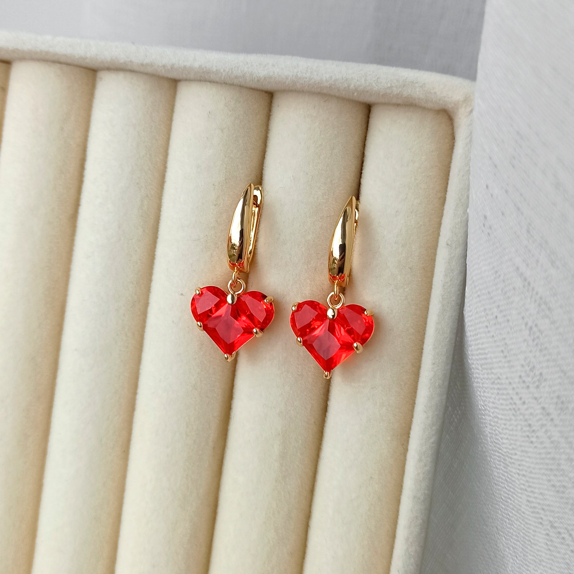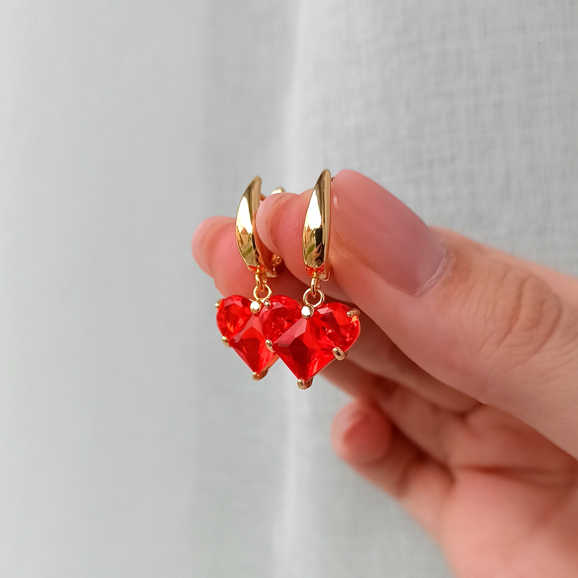 Náušnice z mosazi s 18karátovým pozlacením a srdíčkem z kubického zirkonu.