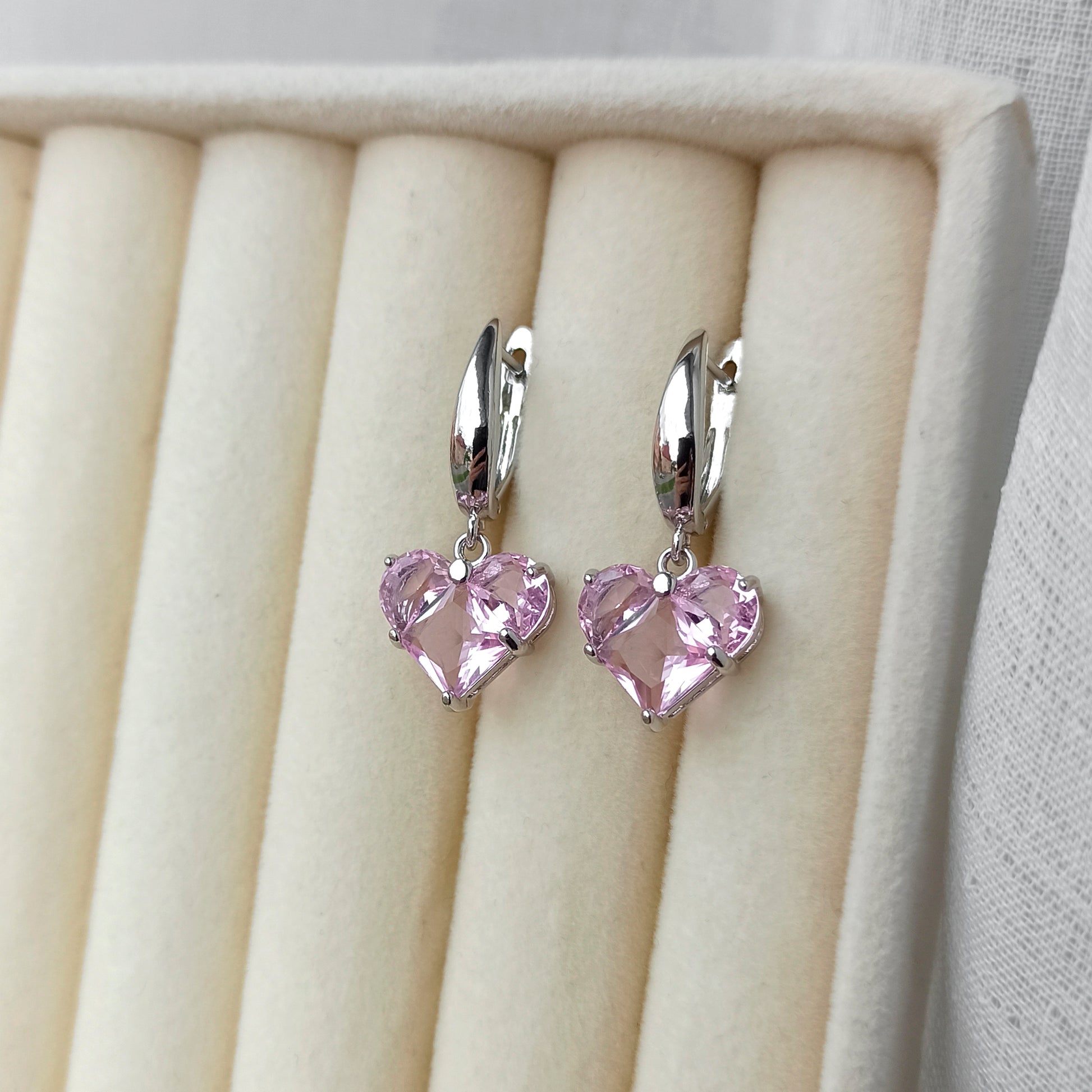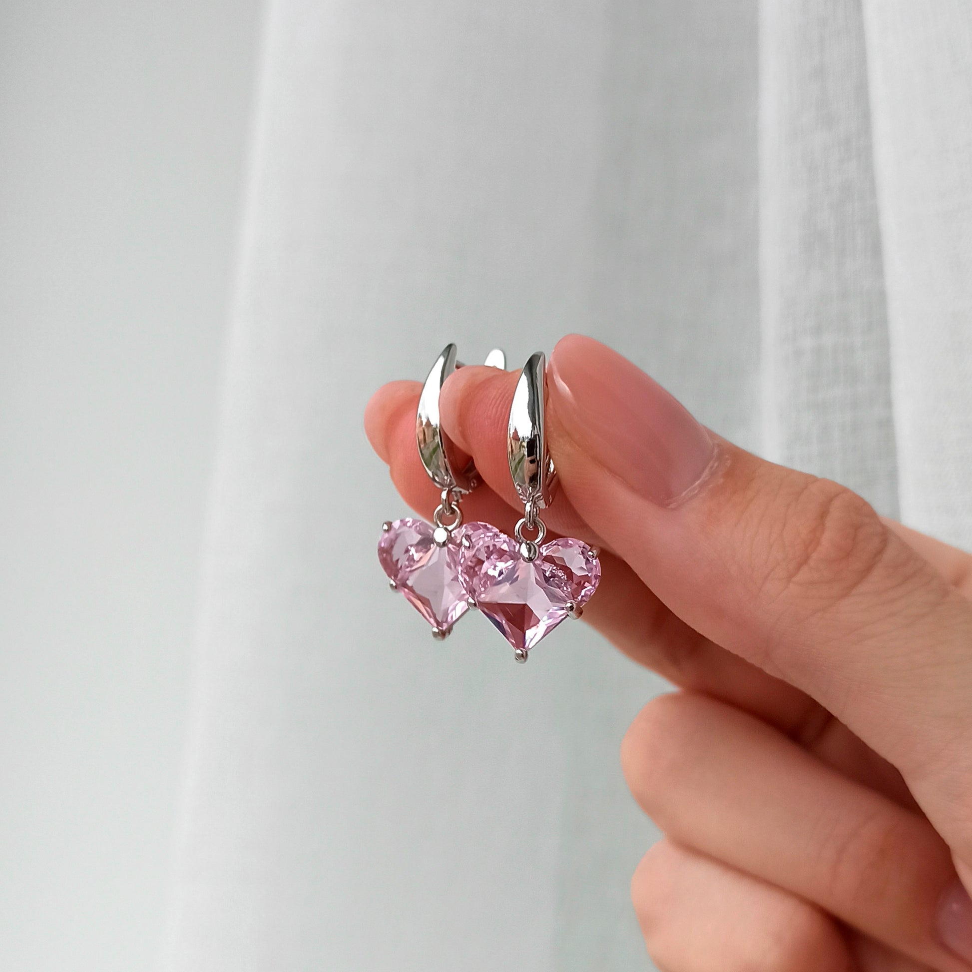 Náušnice z mosazi s rhodiovaným povrchem a srdíčkem z kubického zirkonu.