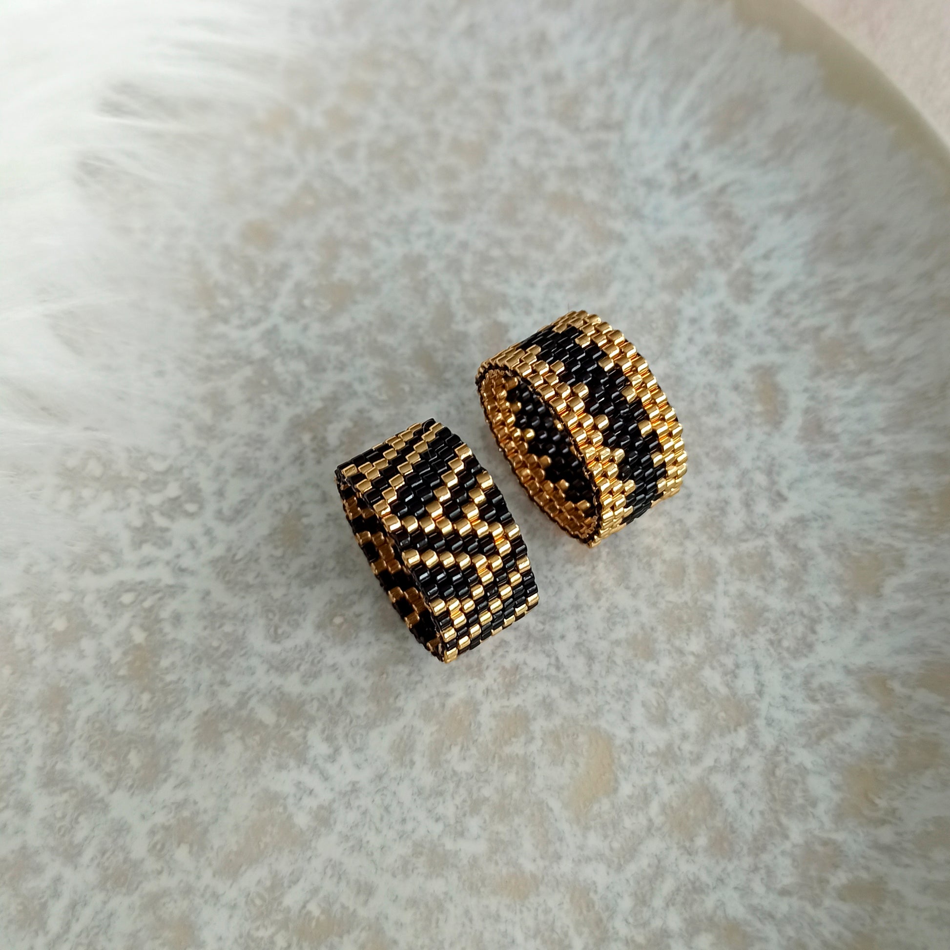 Ručně vyrobený prstýnek s geometrickým vzorem z vysoce kvalitního japonského rokajlu s odolným povrchem.