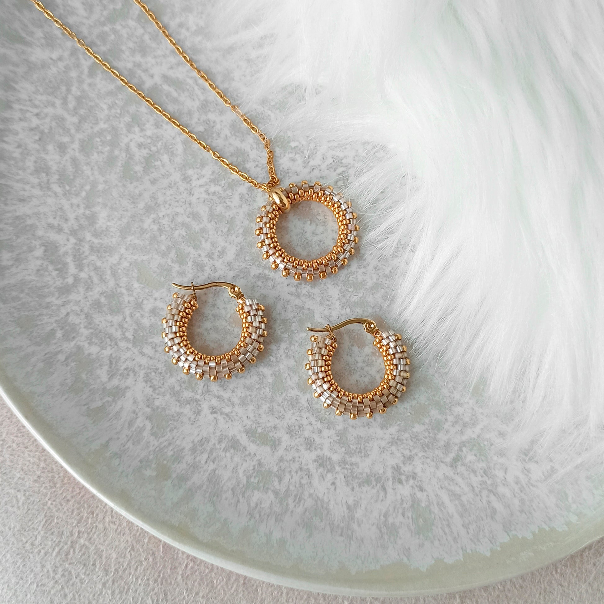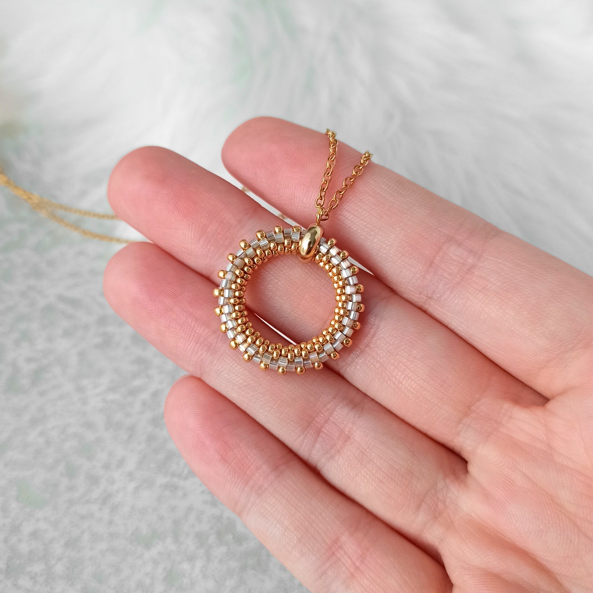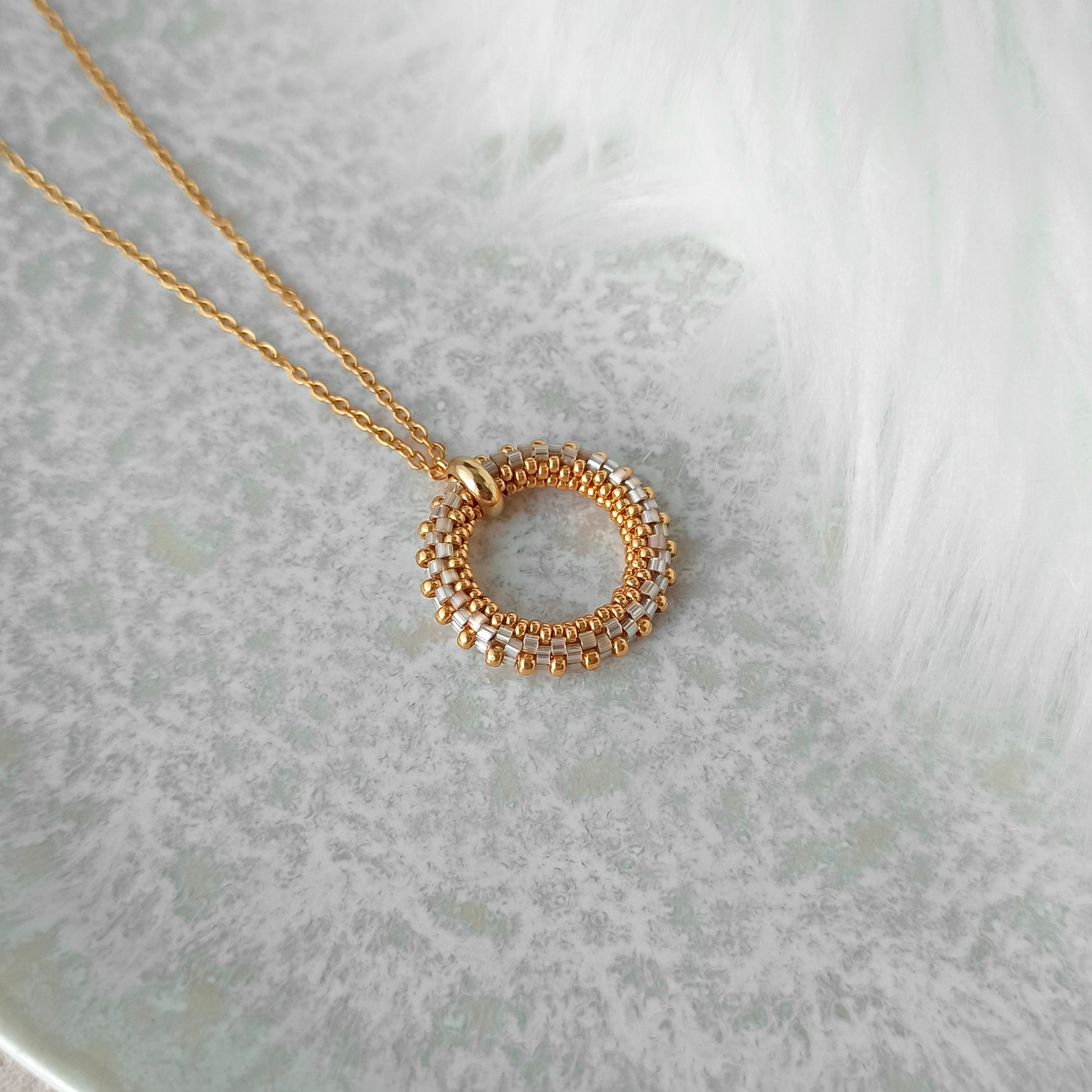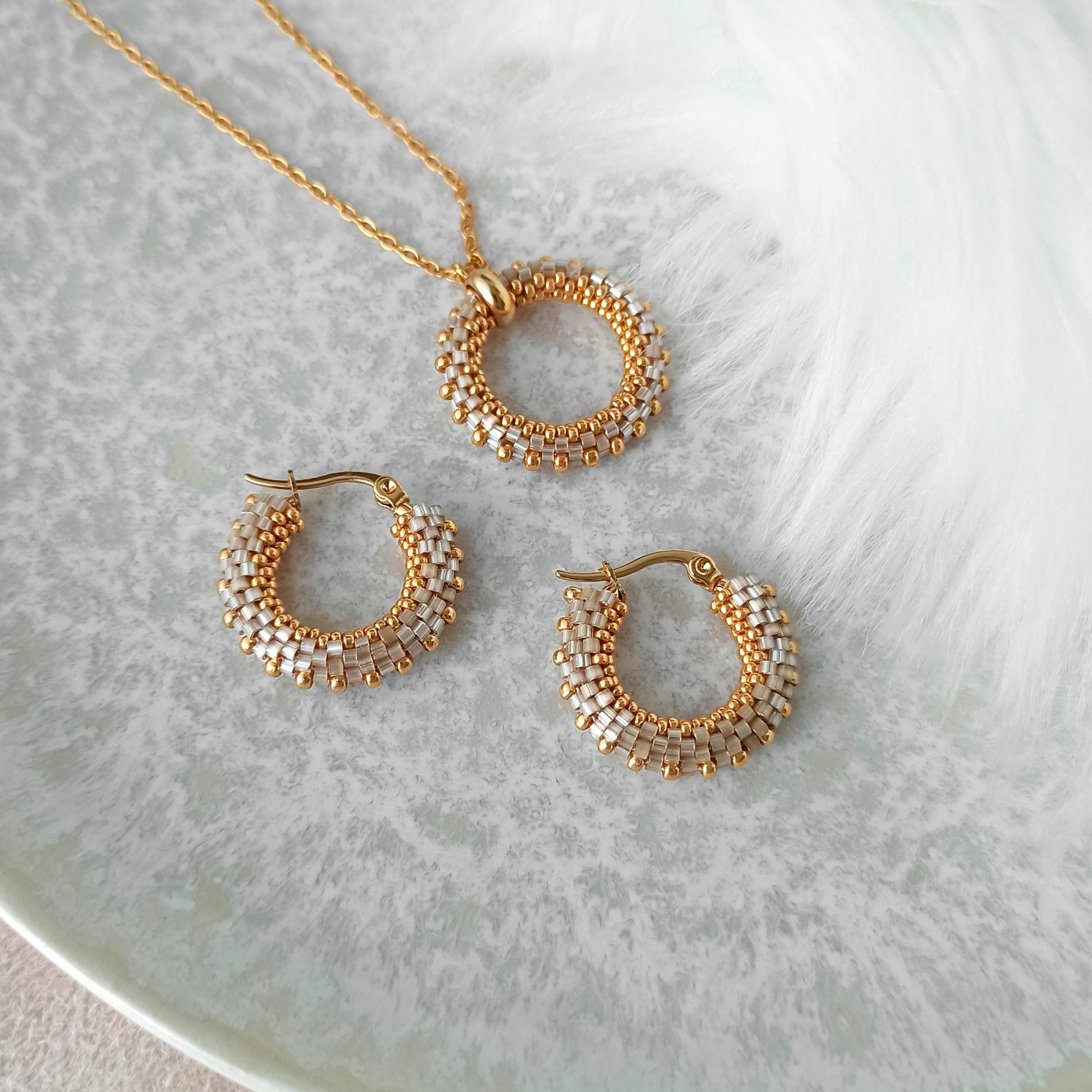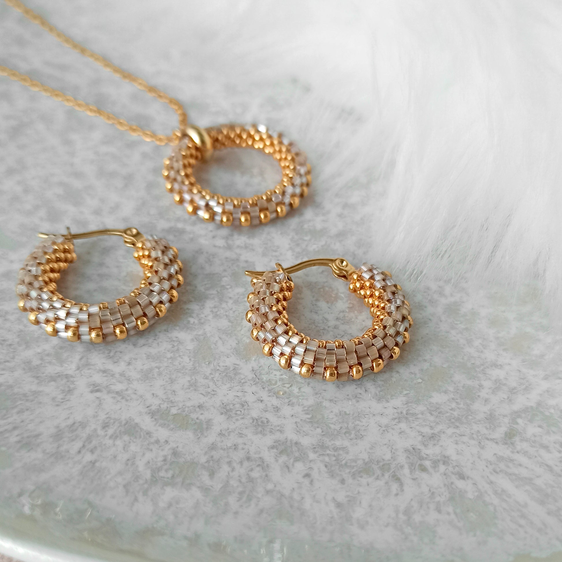 Vyrobeno z vysoce kvalitních japonských korálků a pozlaceného nerezového kování.