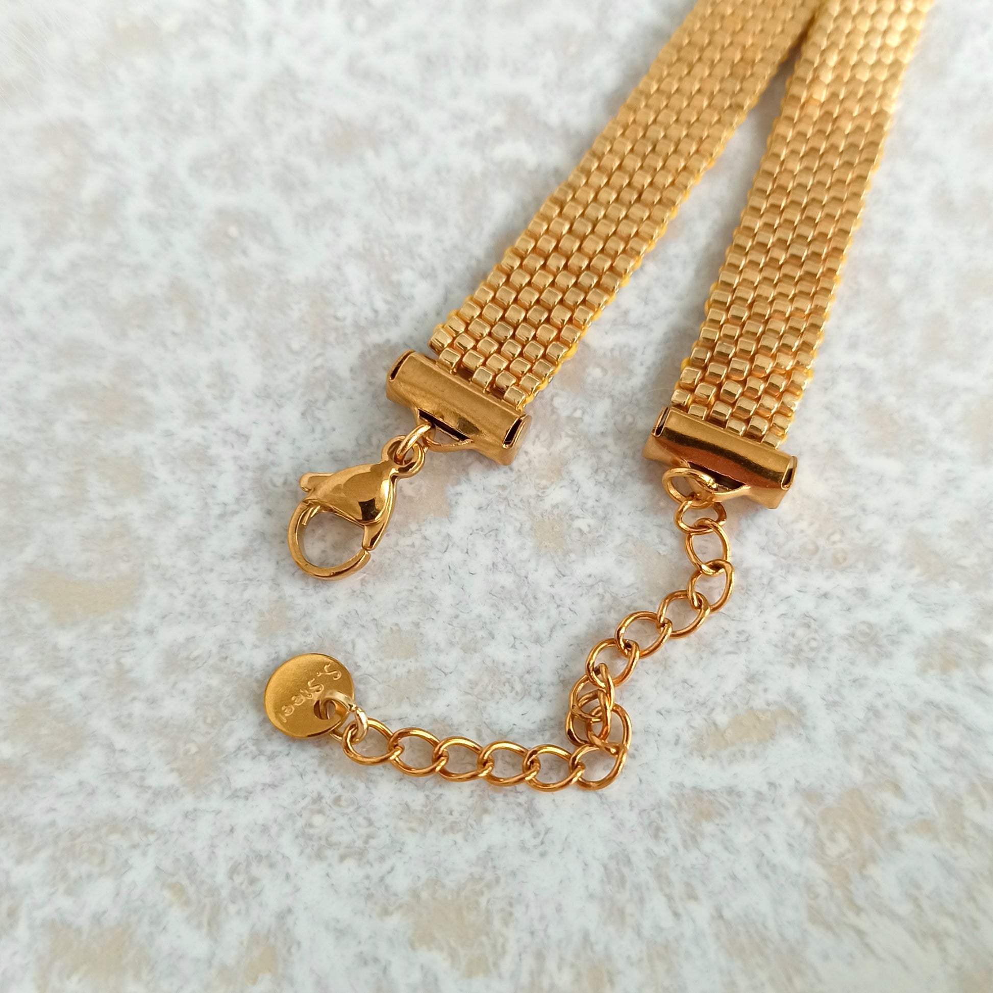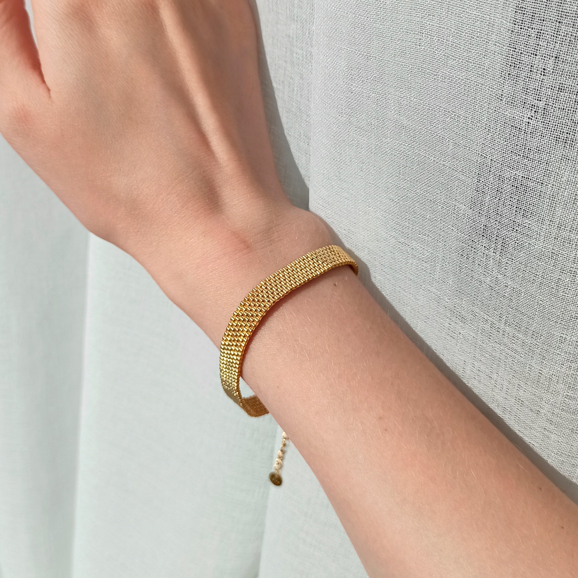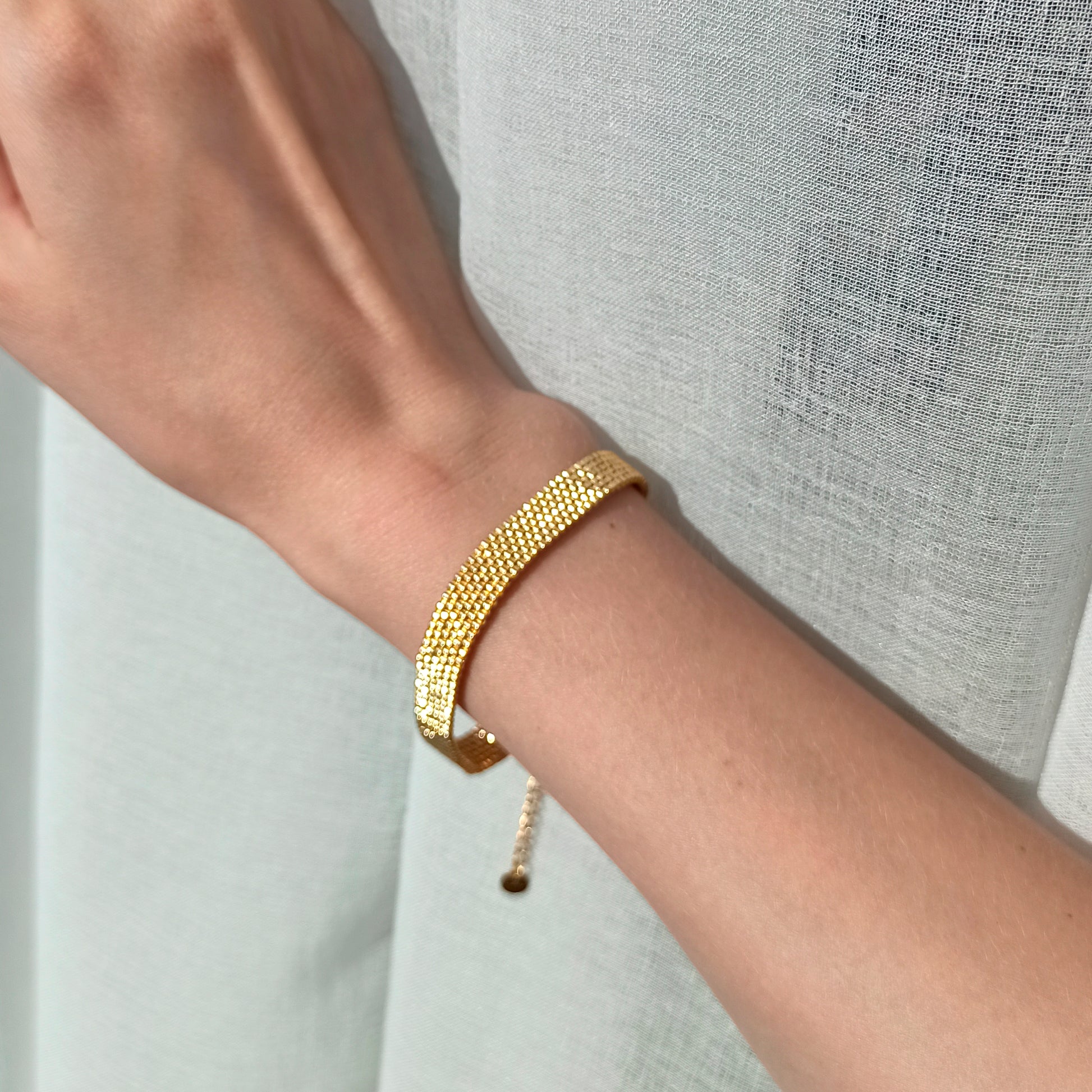 Zlatý náramek vyrobené z japonského rokajlu s odolným povlakem.